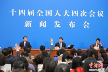 3月4日,十四届全国人大四次会议在北京人民大会堂举行新闻发布会。大会发言人娄勤俭就大会议程和人大工作相关问题回答中外记者提问。 中新社记者 蒋启明 摄